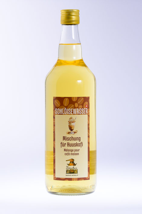 Das Schlöisewasser - eine Eigenkreation der Spezialitätenbrennerei Zürcher - ist eine Spezialmischung verschiedener Destillate und bestens geeignet für die Zubereitung von Huuskafi.